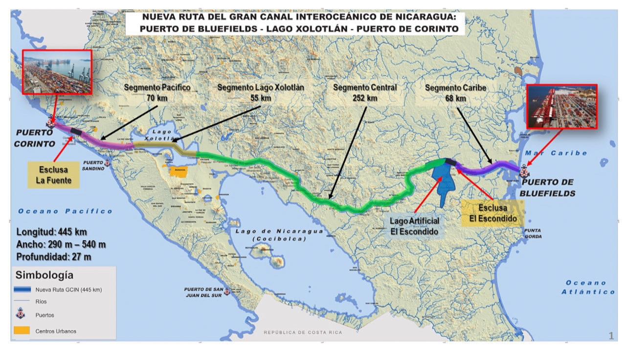 La nueva ruta partiría de un puerto que se construiría en Bluefields, la principal ciudad de la Región Autónoma del Caribe Sur, pasaría por la parte norte de Nicaragua, por el lago Xolotlán, y saldría por el puerto Corinto, en el Pacífico.