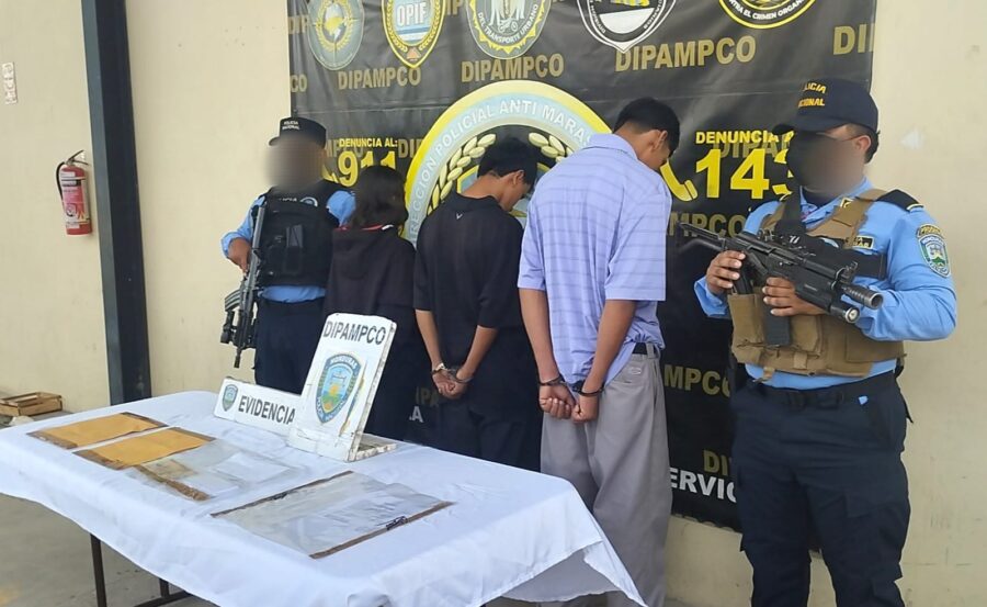 Mientras tanto los capturados identificados con los alias de “El Pompi” de 18 años y una menor en conflicto con la ley identificada únicamente con el alias de “Mayra” han sido encontrados en posesión de dinero en efectivo proveniente del cobro de extorsión y dos teléfonos celulares los cuales se presume podrían estar relacionados a las actividades ilícitas que ellos venían cometiendo.