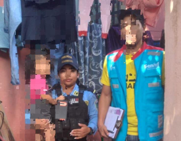 En una acción coordinada entre la Línea 1-1-4 «Mujer, Vivir sin Miedo» y la Secretaria de Niñez Adolescencia y Familia (SENAF), con el apoyo de agentes de la Unidad Metropolitana de Prevención (UMEP) #7 llevaron a cabo el rescate de una niña de tres años que sufría maltrato en el sector Satélite, colonia Sandoval Sorto, San Pedro Sula.