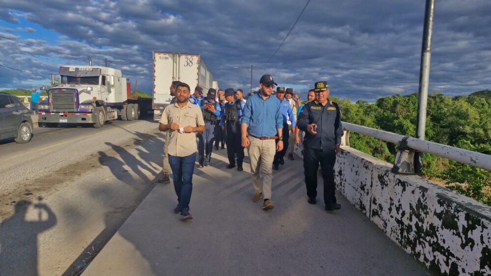 Durante su visita, Wilson Paz en compañia del comisionado general de la Policia José Casco, sub director de la Dirección de Vialidad y Transporte Comisionado Lenín Morel Andino, el gerente de Cooperación Externa Wilfredo Serrano Muñoz y el Coordinador de Delegaciones Wilfredo Escoto realizaron un recorrido para identificar las estrategias mejorar la circulacion de vehiculos en la zona y garantizar la seguridad de las personas que ingresan y salen del territorio nacional.