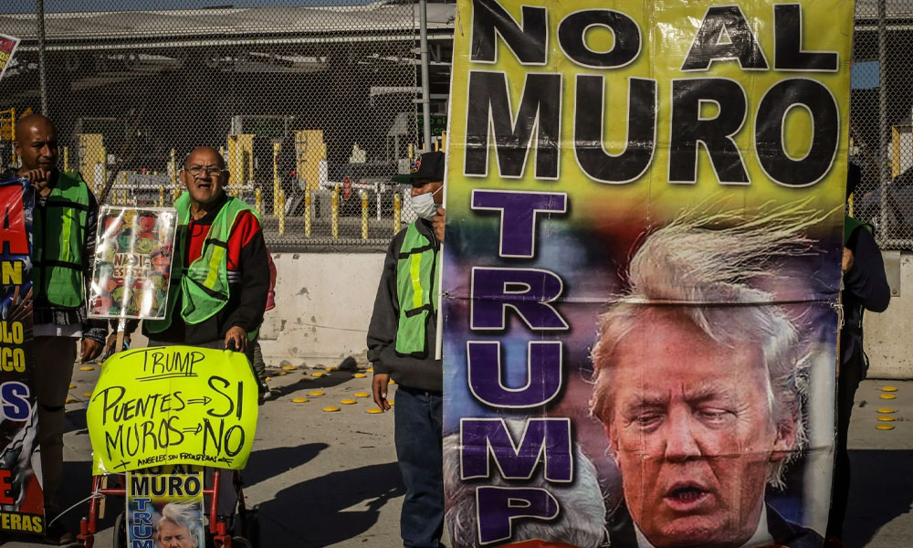 Migrantes protestan en la frontera de México contra amenazas de Trump