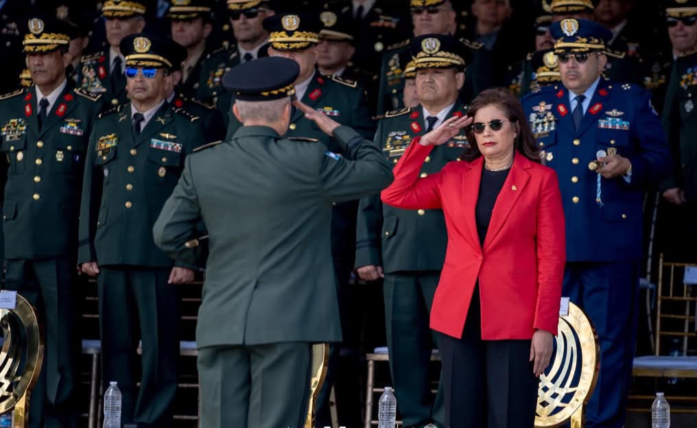 Con todos los honores militares, la Ministra de Defensa Nacional, Rixi Moncada, viceministro de Defensa, Orlando Garner Ordóñez, Jefe del Estado Mayor Conjunto, general Roosevelt Hernández y la Junta de Comandantes, presidieron la ceremonia de despedida y honroso retiro de la XXVI promoción de oficiales de las Fuerzas Armadas.