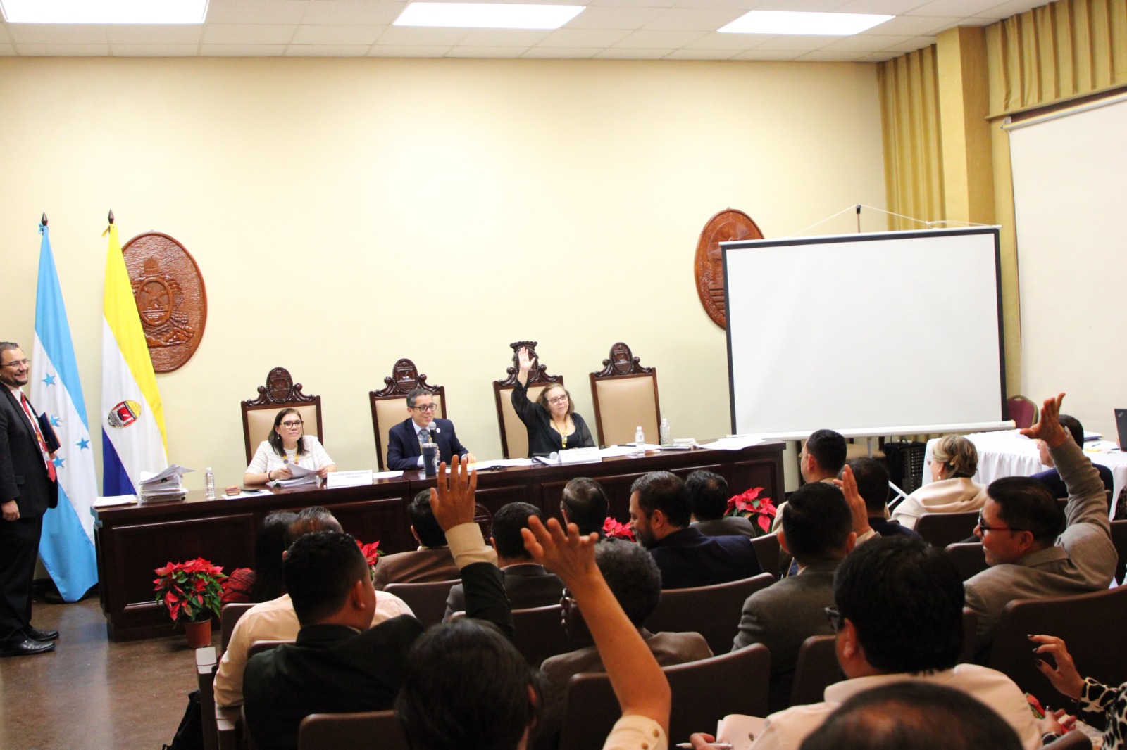 En el desarrollo de esta sesión ordinaria participaron las autoridades de la Junta de Dirección Universitaria (JDU) y de la Comisión de Control de Gestión (CCG) de la UNAH como entes destacables en este tema, quienes también presentaron su apoyo a la aprobación del POA 2025.