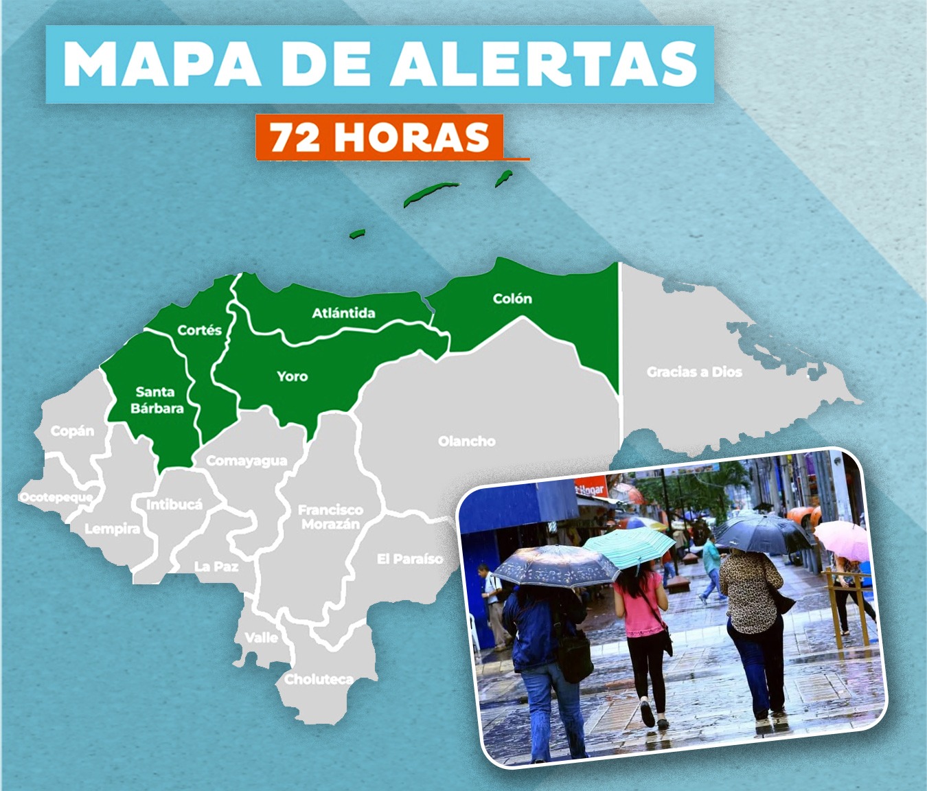 La Secretaría de Estado en los Despachos de Gestión de Riesgos y Contingencias Nacionales (COPECO) emite alerta verde para los departamentos de Islas de la Bahía, Santa Bárbara, Cortés, Yoro, Atlántida y Colón, por un período de 72 horas a partir de las 6 de la tarde de hoy, martes 21 de enero de 2025.