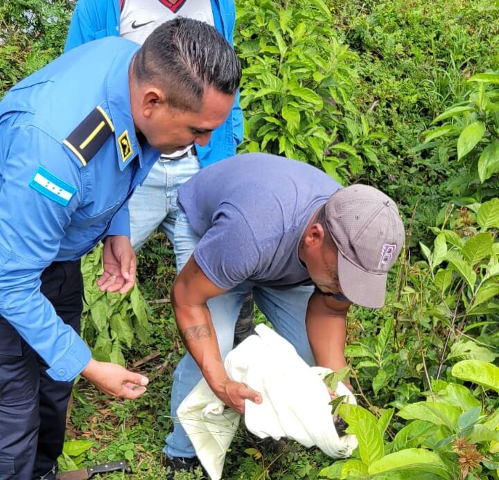 Funcionarios de la Unidad Metropolitana de Policía #4 (UMEP-4) recuperaron a un recién nacido abandonado en un solar baldío en la Aldea Palo Alto Tatumbla, Francisco Morazán.
