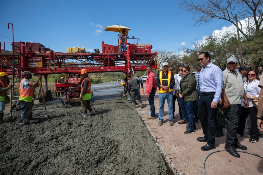 La presidenta Xiomara Castro supervisó hoy la pavimentación del tramo carretero de 18.7 kilómetros que comunica el municipio de San Juan de Flores (Cantarranas) con Talanga, cuyo recorrido ahora se hará en seis minutos.
