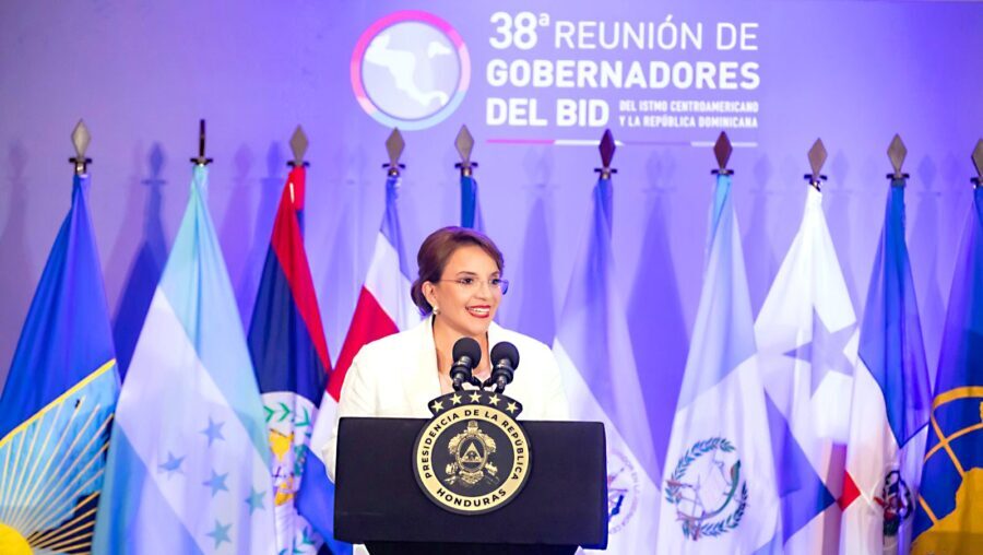 La presidenta Xiomara Castro encabezó en Tela, Atlántida, la 38 reunión de gobernadores del Banco Interamericano de desarrollo (BID) donde expresó que “ningún crédito de organismos multilaterales debería de estar condicionado a la firma de un acuerdo con el Fondo Monetario Internacional FMI”.