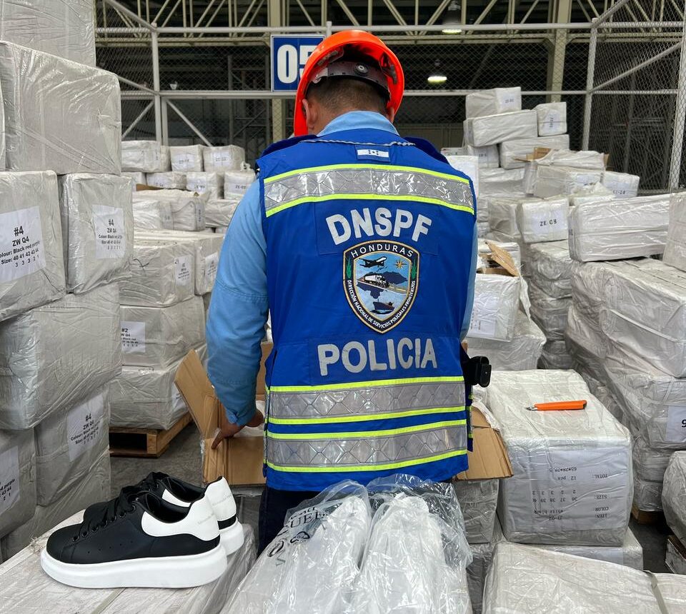 El decomiso se llevó a cabo en un Centro Logístico de Puerto Cortés, donde los agentes decomisaron un total de 15,798 pares de tenis de diferentes marcas, cuyo valor en el mercado hondureño asciende a 47 millones 368 mil 218 lempiras (L.47,368,218.00).