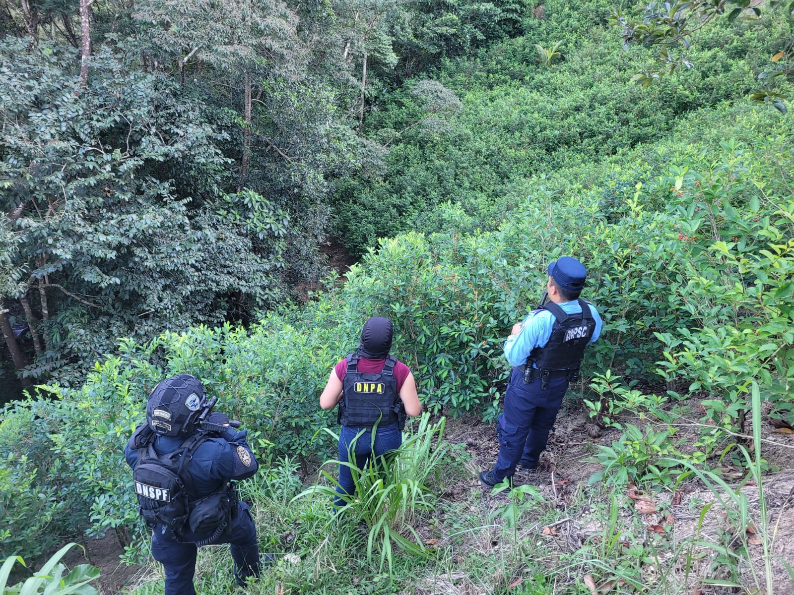 En una operación de alto impacto contra el narcotráfico, la Policía Nacional, a través de la Dirección Nacional Policial Antidrogas (DNPA), con el apoyo de la Dirección Nacional de Prevención y Seguridad Comunitaria (DNPSC), la Dirección Nacional de Servicios Policiales Fronterizos (DNSPF) y la Dirección de Inteligencia Policial (DIPOL), logró la ubicación, aseguramiento y levantamiento de muestras de una extensa plantación de supuesta hoja de coca en la aldea La Fortuna, municipio de Limón, departamento de Colón.