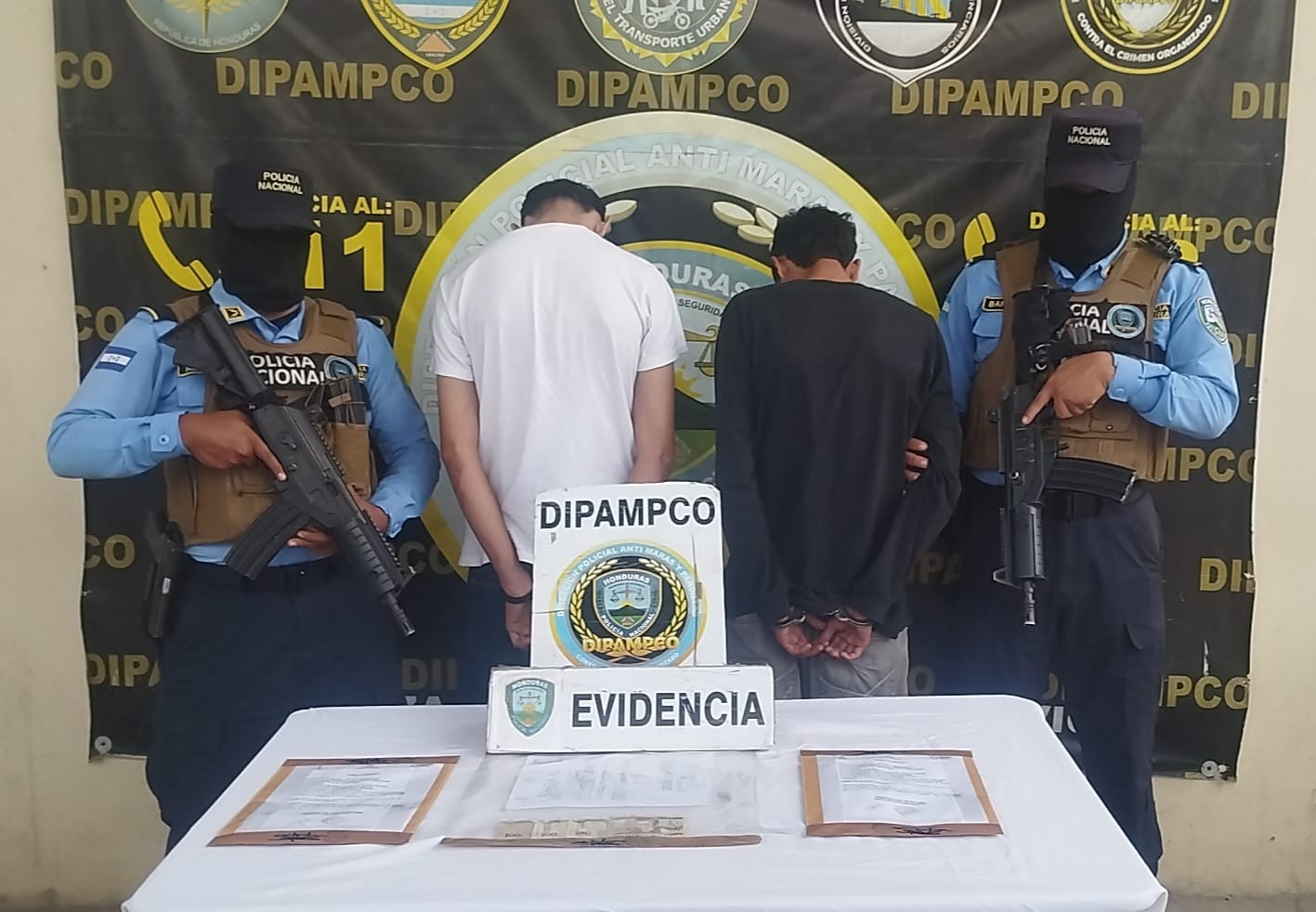 Las acciones operativas implementadas han permitido que, en las últimas horas, unidades especiales de la DIPAMPCO ubicaran y capturaran a dos individuos mientras realizaban una ronda de cobro de extorsión en la colonia San Isidro, Comayagüela.