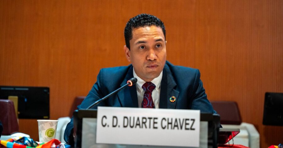 En su discurso, el Ministro Duarte, hizo énfasis en las consecuencias devastadoras del modo de producción y consumo sobre el ecosistema y los niveles crecientes del calentamiento global, y cómo esto se traduce en catástrofes climáticas y sociales cada vez más frecuentes que colocan grandes presiones fiscales sobre los países pobres, teniendo que recurrir a la deuda pública para financiar la respuesta gubernamental.