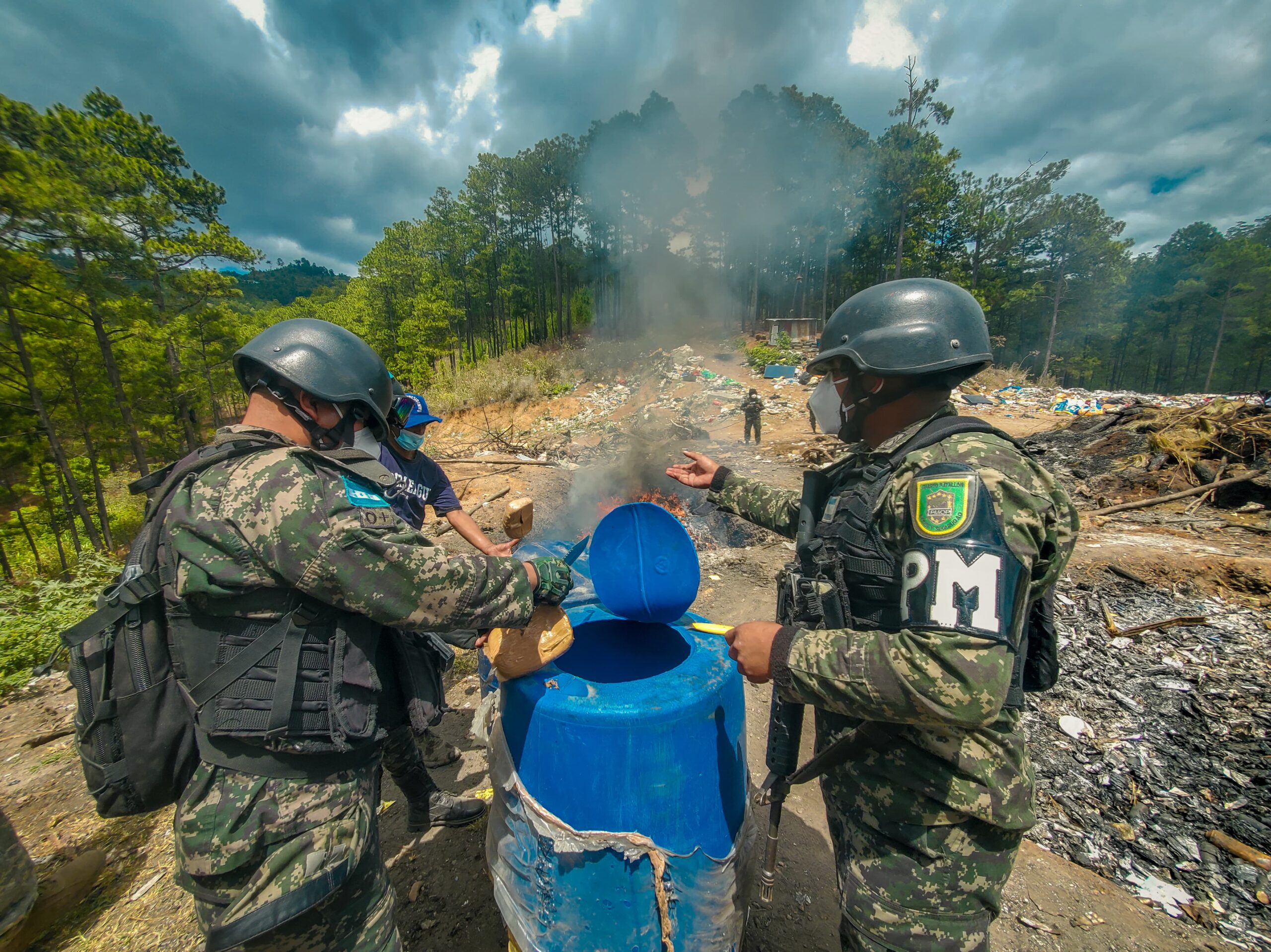 En la operación de incineración de drogas, participaron, Las Fuerzas Armadas de Honduras, Policía Militar del Orden Público, Ministerio Público y el Cuerpo de Bomberos, entre otras instituciones del Estado que dan muestra de transparencia y credibilidad al momento de reducir a cenizas la droga decomisada.