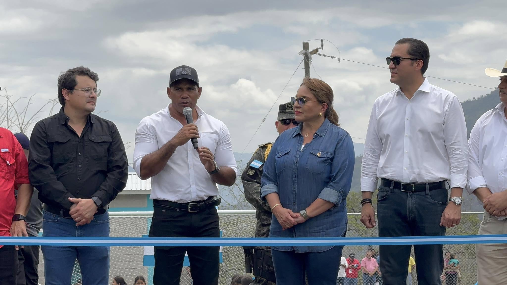 La presidenta de la República, Xiomara Castro, junto al comisionado de la Comisión Nacional de Deportes, Educación Física y Recreación (CONDEPOR), Mario Moncada, inauguraron una moderna cancha de fútbol 11 con grama sintética profesional en el municipio de Arada, en el noroccidente de Honduras.