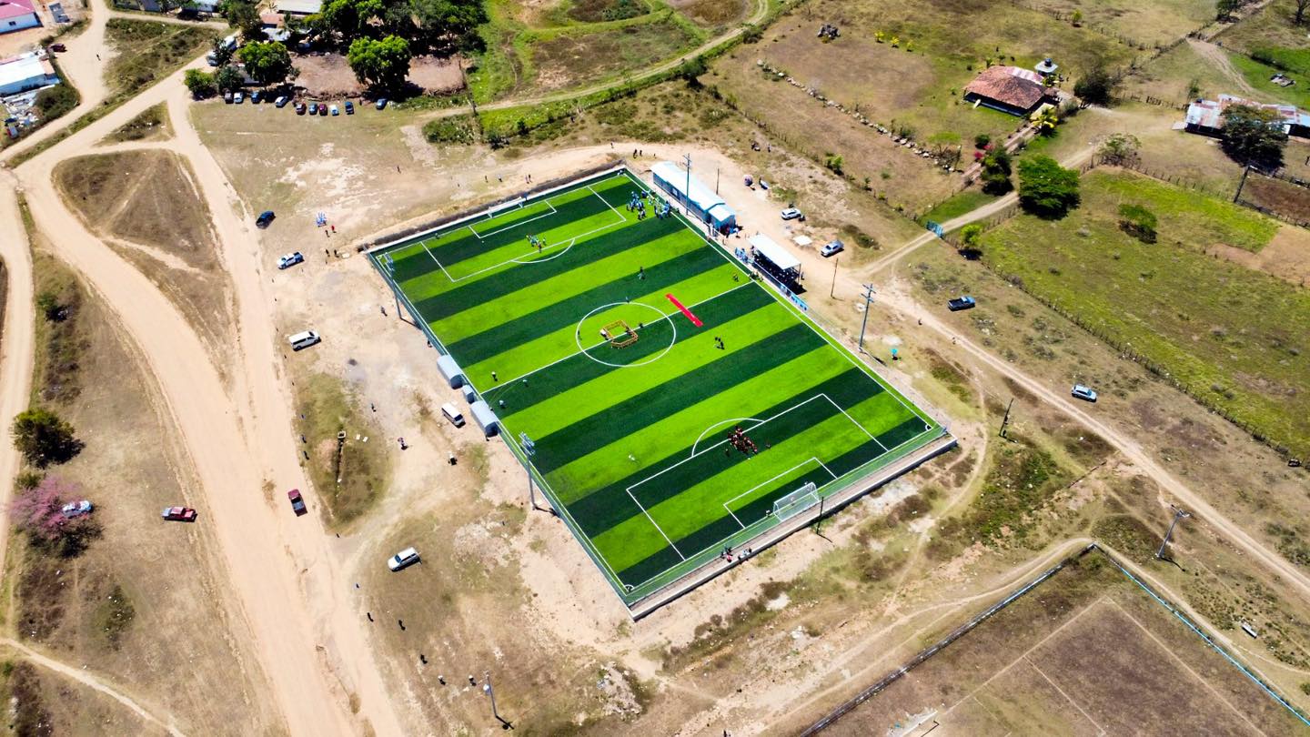 Donde antes había abandono y tierra estéril, hoy hay grama sintética, porterías oficiales, luces encendidas y esperanza.