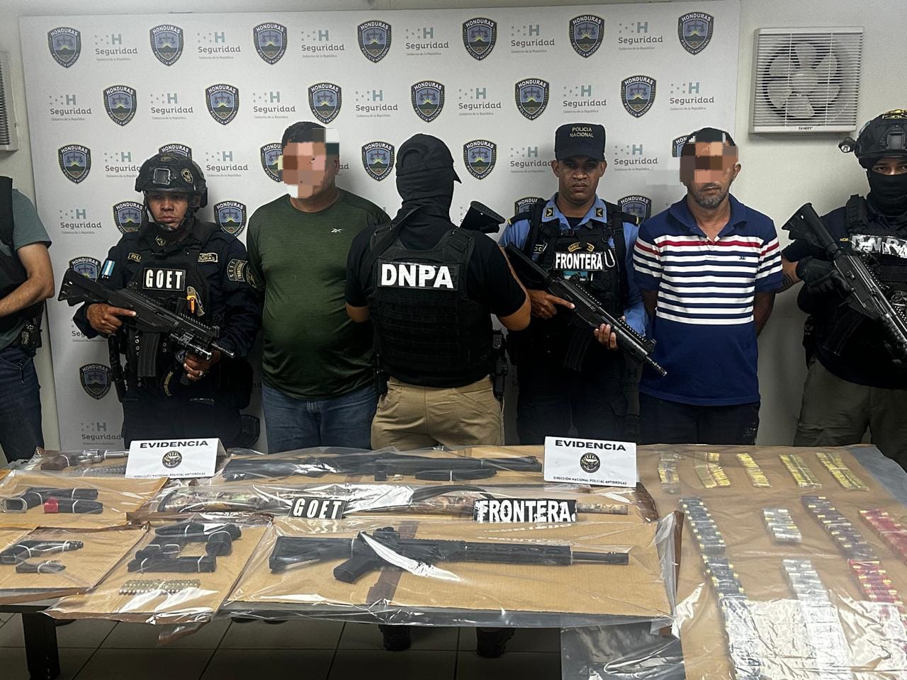 Los detenidos son dos hombres de 46 y 57 años, originarios de Trinidad, Santa Bárbara, y residentes en la aldea El Diviso. Durante un allanamiento con orden judicial, se les decomisó una escopeta calibre 12 mm, un fusil calibre 22 mm, un fusil calibre 5.56 mm, tres pistolas 9 mm y un revólver 357. Además, se incautaron 428 cartuchos de distintos calibres.