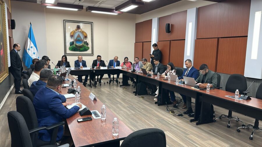 Para ello estuvieron reunidos los vicepresidentes del Congreso Nacional, Hugo Noé Pino y José Rosario Tejeda, presidente de la Comisión de Educación, el diputado Edgardo Casaña, autoridades del INPREMA, representantes de la Comisión Nacional de Bancos y Seguros, el sub secretario de Educación, Edwin Hernandez, entre otros.