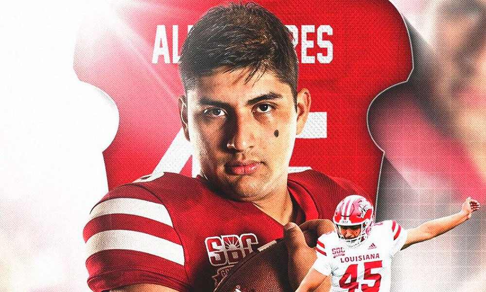 Almendares de 25 años nacido en San Pedro Sula juega en la posición de pateador de la universidad de Louisiana Ragin’ Cajuns, y está invitado a participar en la pretemporada de los 49ers.