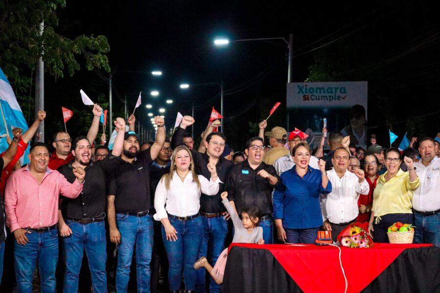 La presidenta Xiomara Castro inauguró cuatro tramos carreteros pavimentados con cemento hidráulico y seis proyectos de iluminación en comunidades de los municipios de Juticalpa, San Francisco de la Paz y Concordia, en el departamento de Olancho.