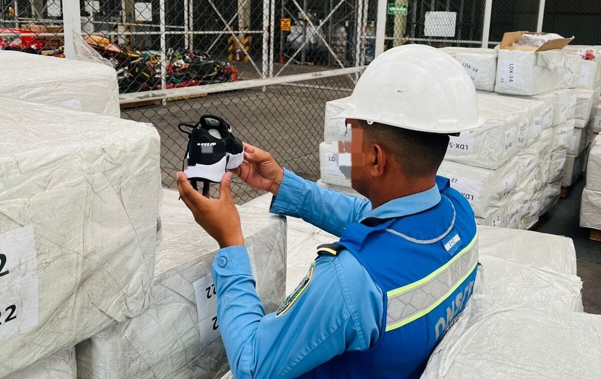 En un contundente golpe al crimen organizado y la falsificación de marcas, la Dirección Nacional de Servicios Policiales Fronterizos (DNSPF), en coordinación con la Dirección Policial de Investigaciones (DPI) y la Unidad de Control de Contenedores (UCC), realizó el decomiso de 9,072 pares de zapatos tipo tenis de la marca Nike, presuntamente falsificados, en las instalaciones del Centro Logístico de la Operadora Portuaria Centroamericana (OPC) en Puerto Cortés.