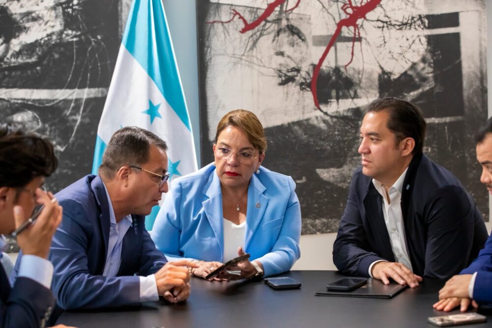 La mandataria es acompañada por el secretario privado Héctor Manuel Zelaya; el canciller Javier Efraín Bú Soto; el ministro de Finanzas Christian Duarte y una comitiva que representará a Honduras en diferentes mesas redondas.
