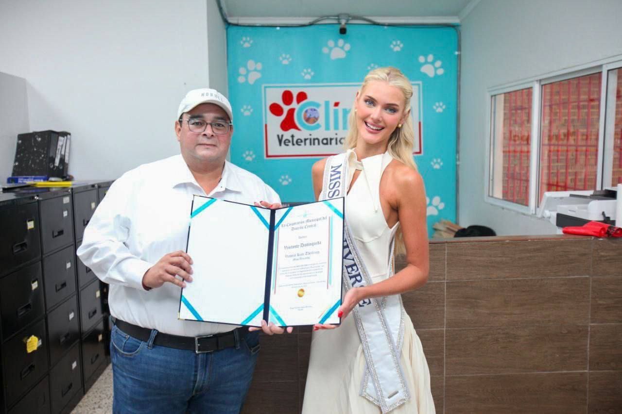 En las últimas horas la Clínica Veterinaria Municipal abrió sus puertas para recibir a victoria kjaer, Miss Universo, la primera danesa en ostentar este título de belleza.