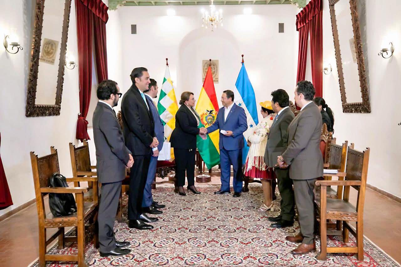 En el marco de su visita oficial a Sucre, Bolivia, la presidenta de la República de Honduras, Xiomara Castro, sostuvo un encuentro bilateral con el presidente del Estado Plurinacional de Bolivia, Luis Arce Catacora, con quien dialogó sobre temas fundamentales para el fortalecimiento de las relaciones entre ambas naciones.