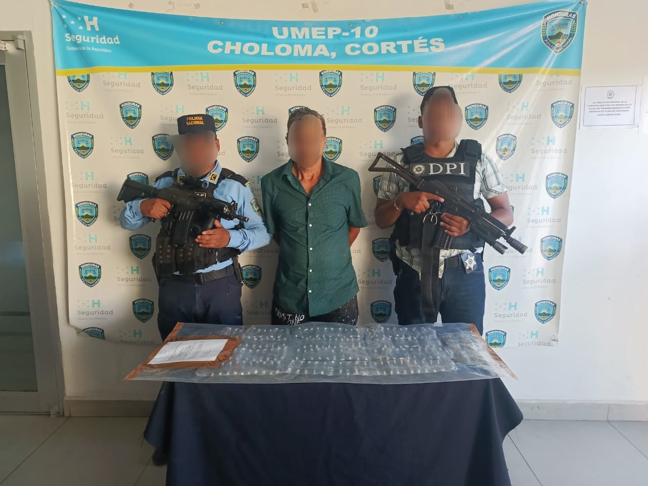 La detención se ejecutó en la colonia Brisas del Paraíso, sector López Arellano, municipio de Choloma, Cortés, siendo posteriormente trasladado a la Estación Policial del sector junto con las evidencias.