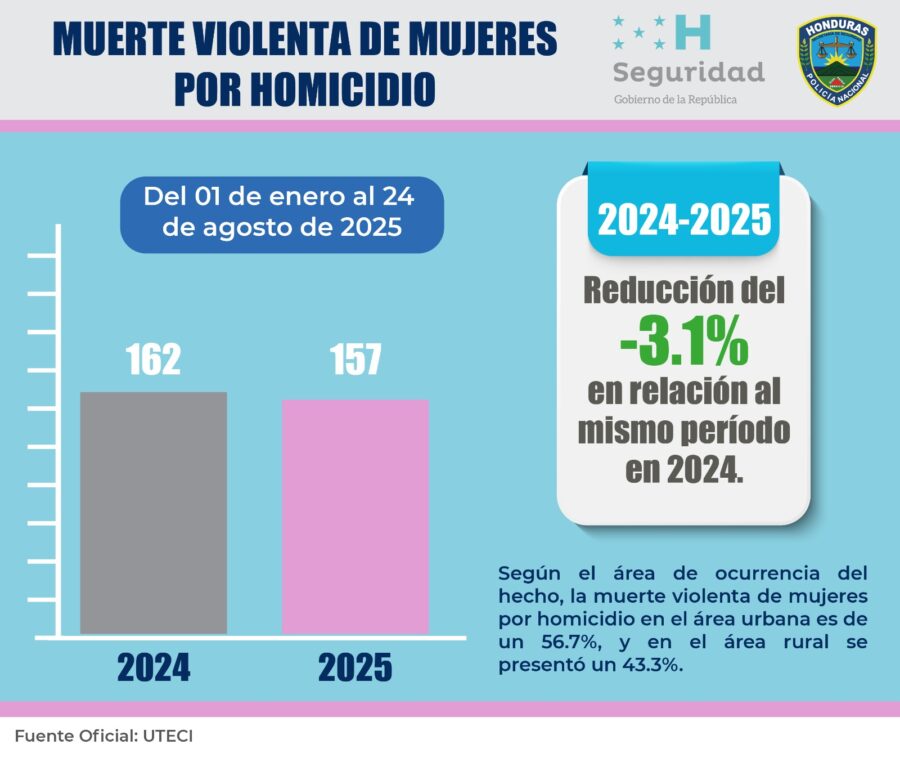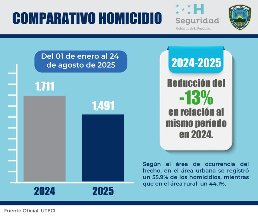 La Secretaría de Seguridad, a través de la Policía Nacional y con el acompañamiento de la Unidad Técnica de Coordinación Interinstitucional (UTECI), presentó el informe preliminar de resultados alcanzados entre el 1 de enero y el 24 de agosto de 2025, donde se evidencia una tendencia positiva en la reducción de hechos violentos y siniestralidad vial en distintas zonas del país.