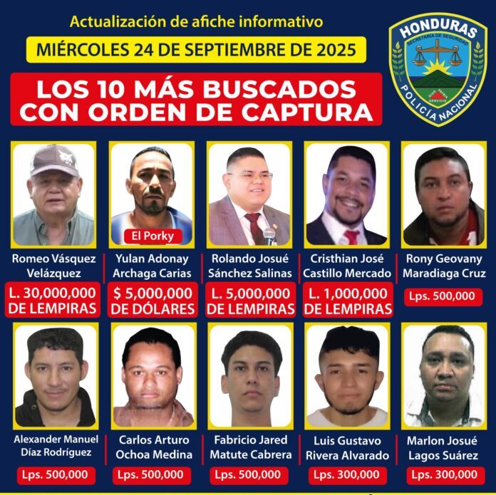 La Policía Nacional anunció un aumento en la recompensa ofrecida por la captura del exgenaral de las Fuerzas Armadas, Romeo Vásquez Velásquez, elevando la suma a 30 millones de lempiras, la más alta en la historia del país.
