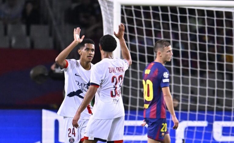 Un gol del delantero Gonçalo Ramos en el minuto 90 dio la victoria al París Saint-Germain ante el Barcelona (1-2) en el partido de la segunda jornada de la fase liga de la Liga de Campeones disputado en el Estadio Olímpico Lluís Companys.