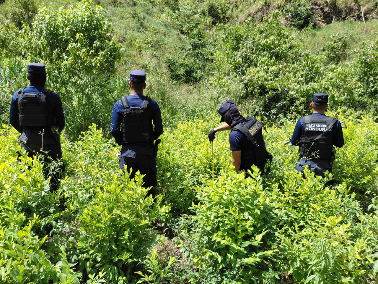 La Dirección Nacional Policial Antidrogas (DNPA), asestó un contundente golpe al narcotráfico al ubicar y asegurar una extensa plantación de supuestos arbustos de coca, junto con un laboratorio rústico, en una zona montañosa de la aldea Nueva Vida, municipio de Tocoa, departamento de Colón.