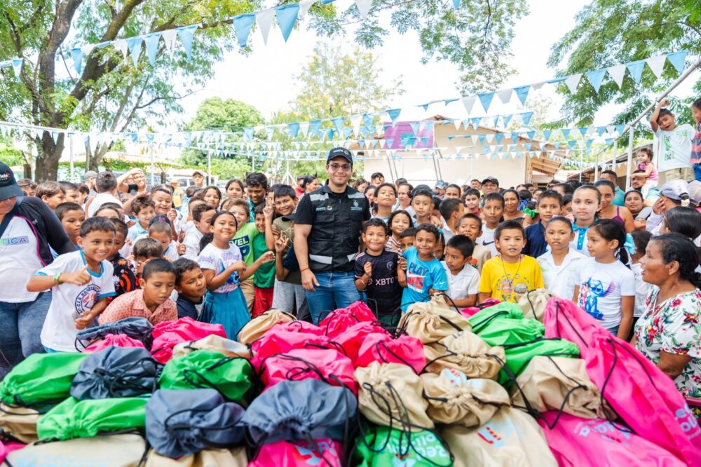 En el Centro de Educación Básica Terencio Sierra, ubicado en la comunidad de El Cubulero, y en el Centro Básico Ramón Amaya Amador, en La Sonora, se distribuyeron kits solidarios y pañaleras a mujeres y niños, beneficiando a decenas de familias en situación de vulnerabilidad.