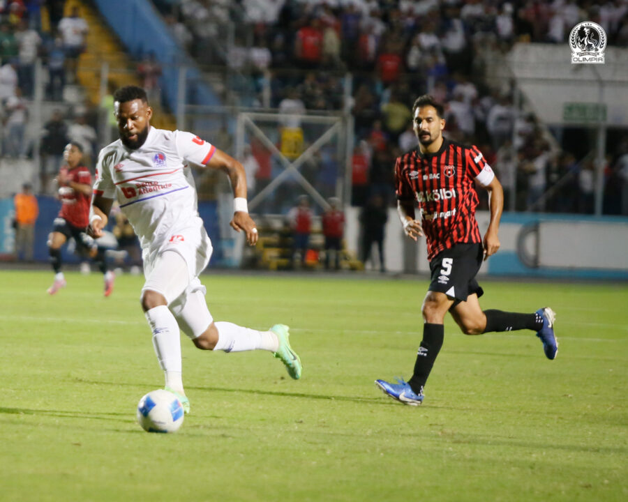 Kevin López, del Olimpiá, intentó otro disparo que se fue muy alto. Ronald Matarrita, del Alajuelense , convirtió el penal para ampliar la ventaja del club costarricense.