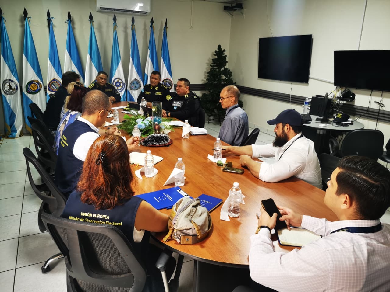 Con el firme compromiso de garantizar un proceso electoral seguro y transparente, autoridades de la Policía Nacional de la Regional N.2 en el Valle de Sula, encabezadas por el Comisionado de Policía Rolando Ponce Canales, sostuvieron una reunión de coordinación con representantes de la Misión de Observación Electoral 2025 de la Unión Europea (UE).