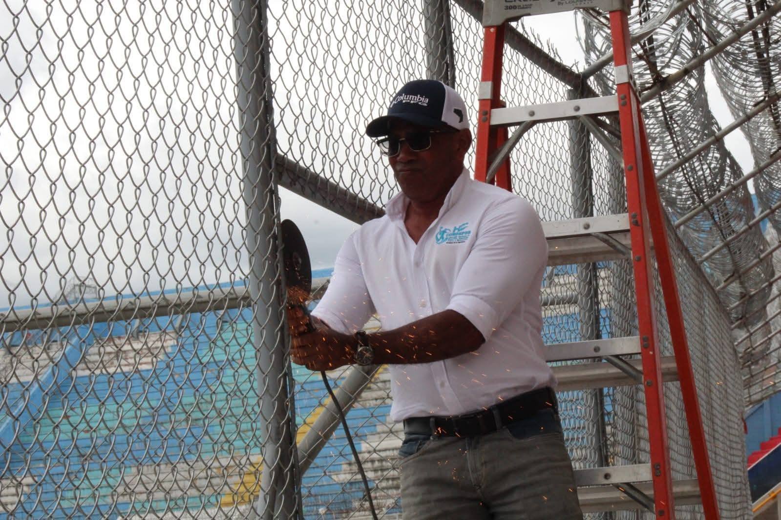 El Comisionado del Deporte y titular de la CONDEPOR, Mario Moncada, personalmente inició las obras de remoción del cerco de malla y serpentina del nuevo sector preferencial (antes conocido como sol centro) del recinto deportivo.