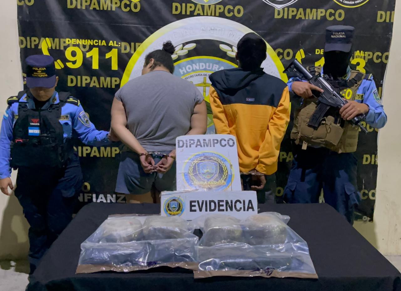 Los capturados fueron identificados como Francisco Antonio Flores Ilovares, de 23 años de edad, conocido en el mundo delictivo con el alias de “Little Asesino”, y Catherine Marcela Rivera Gallo, de 18 años, alias “La Madrina”. Ambos serían piezas clave dentro de la logística de distribución de estupefacientes en este sector de Comayagüela.