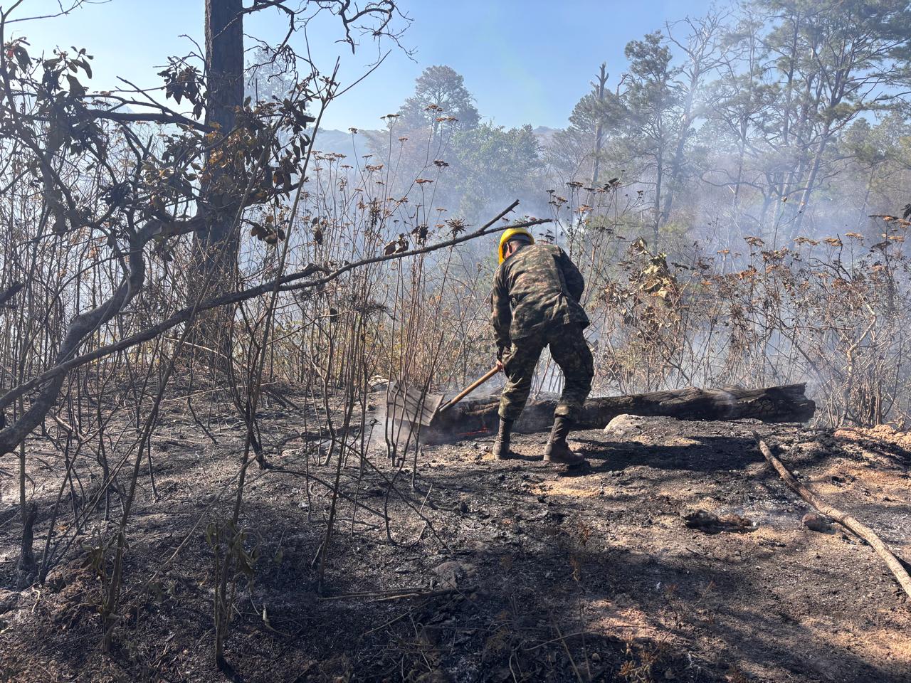 Durante el fin de semana las Fuerzas Armadas (FFAA) a través de personal del Comando de Apoyo al Manejo de Ecosistemas y Ambiente, asi como de otras unidades militares participó en el combate y control de siete incendios forestales y de zacateras, que se presentaron en diversos sectores del país.