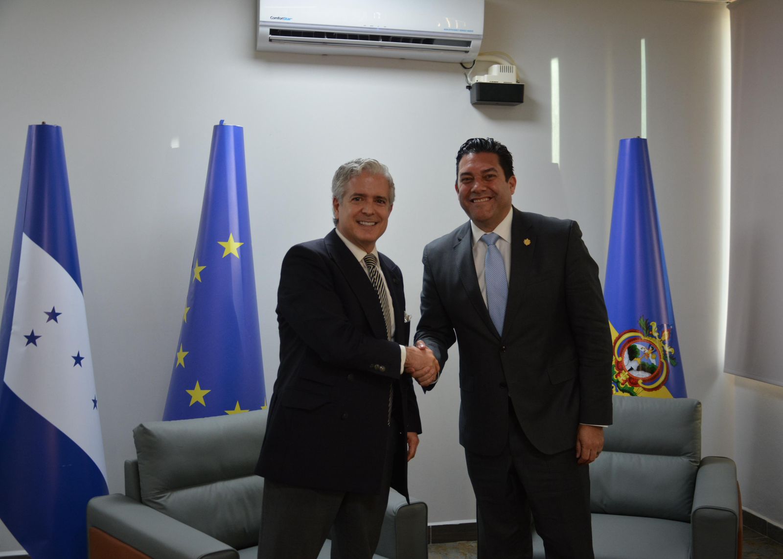 El alcalde del Distrito Central, Juan Diego Zelaya, sostuvo una reunión con el embajador de la Unión Europea (UE) en Honduras, Gonzalo Fournier Conde, en la que abordaron diversos temas de interés en las relaciones de cooperación entre esa organización y el país, incluida la capital hondureña.