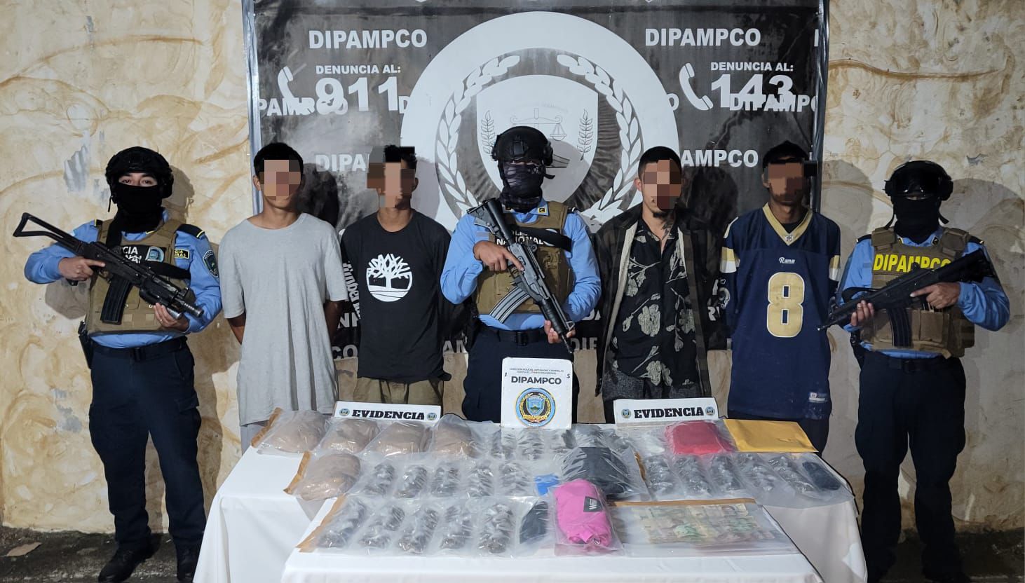 Todos los aprehendidos, son integrantes de la estructura criminal Pandilla 18, dedicados a distribuir drogas en la comunidad de El Sitio y zonas aledañas.