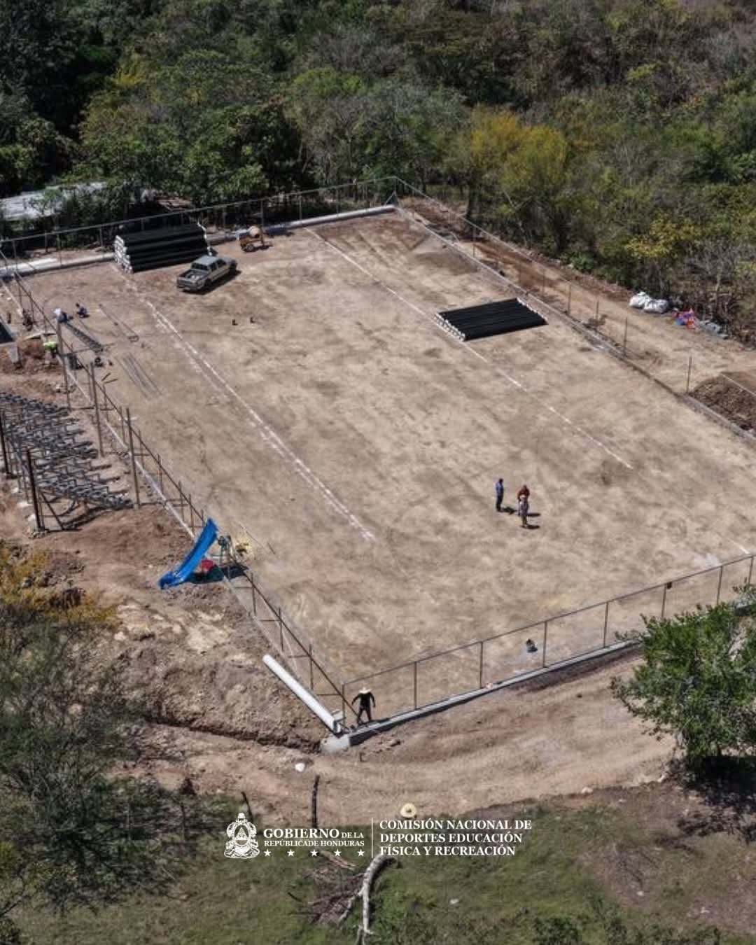 La nueva administración de CONDEPOR informa que dará continuidad a la construcción de la cancha de fútbol 9 en la comunidad de Gualiquito, en el municipio de Gualala, Santa Bárbara.