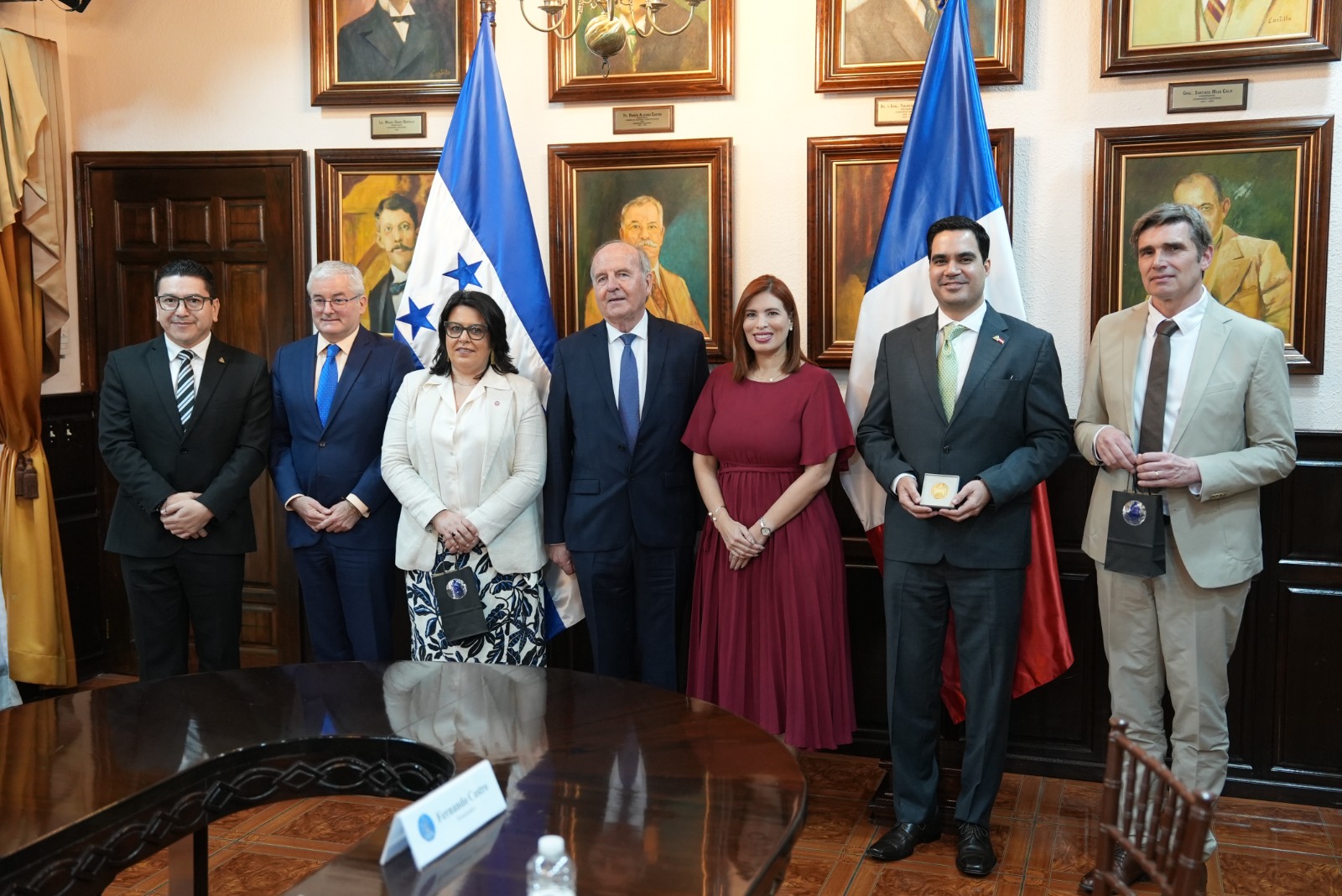 La delegación francesa estuvo integrada por el embajador en Honduras, Cédric Prieto; el senador y presidente de comisión Daniel Laurent, el senador Jean-Marc Vayssouze-Faure y la senadora Anne-Sophie Romagny, quienes fueron recibidos por la vicepresidenta del Congreso Nacional, Erika Urtecho, junto a los diputados Eder Mejía y Fernando Castro.