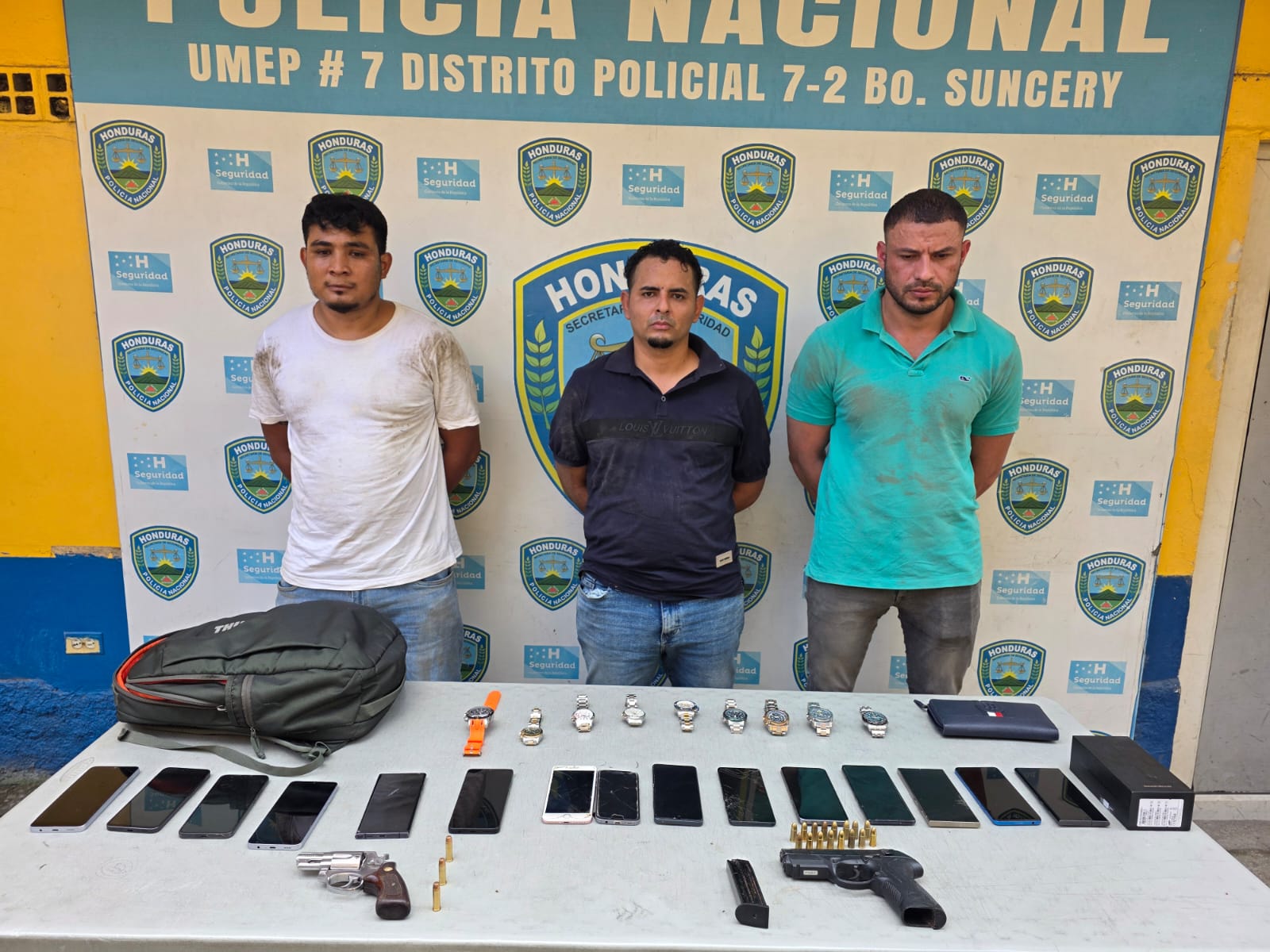 Los ahora arrestados fueron identificados como un hombre de 38 años, originario de Sulaco, Yoro y residente en la colonia Satélite; un sujeto de 35 años, originario de San Pedro Sula, Cortés y residente en El Progreso, Yoro; y un individuo de 32 años, originario y residente en San Pedro Sula, Cortés.
