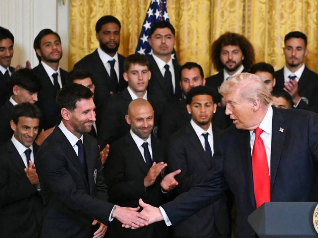 Deportes Messi y el hondureño David Ruiz en la Casa Blanca 5 de marzo de 2026 Por Redacción El plantel del Inter de Miami con su astro Lionel Messi y demás figuras como el hondureño David Ruiz, visitaron la Casa Blanca y al presidente de los EE.UU., Donald Trump. La ceremonia fue en honor al título del Inter Miami en la MLS. Related Topics:Messi Up Next CR-7 con fuerte lesión No te lo puedes perder... Dereck Moncada de los mejores extremos sub-20 Continuar Leyendo