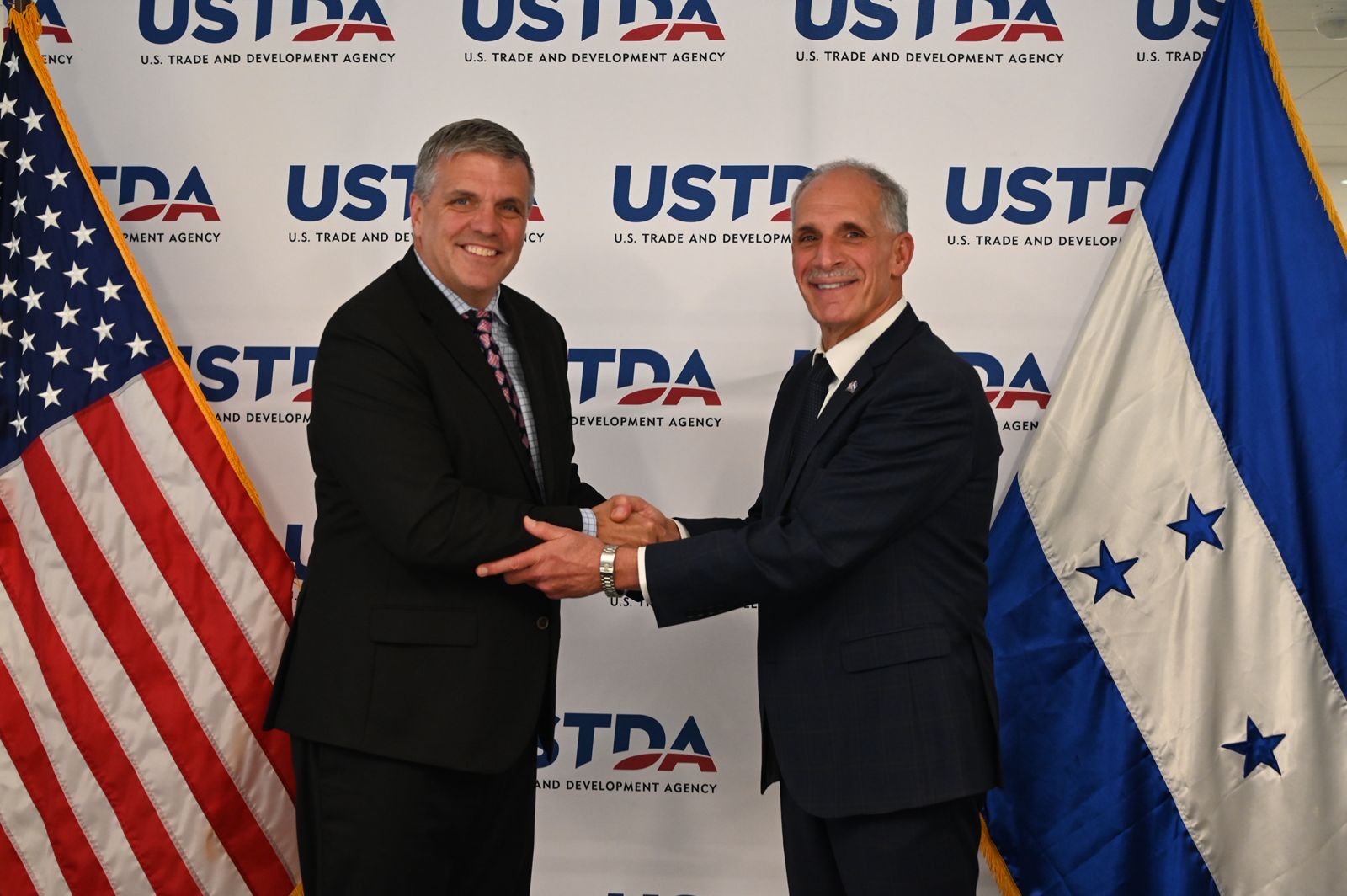 La reunión se llevó a cabo en las oficinas de United States Trade and Development Agency (USTDA) en Washington, D.C., donde el mandatario hondureño sostuvo un encuentro con Thomas R. Hardy, Director Adjunto y Director de Operaciones de la agencia estadounidense.