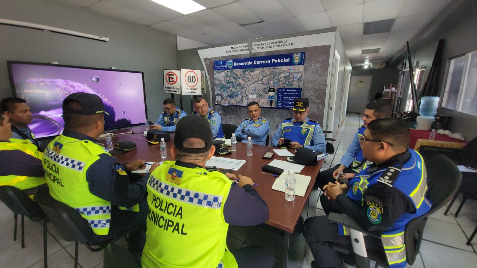 La reunión fue presidida por el subdirector de la DNVT, comisionado de Policía Wilmer Varela Cilieser, también participaron el jefe de Patrulla de Carreteras, Sub Comisionado de Policía Jorge Daniel Molina Gálvez; el jefe de Operaciones de la DNVT, Sub Comisionado de Policía Enox Avelino Fúnez Medina; el jefe del Escuadrón Metropolitano No. 1, Sub Comisario de Policía Erik Eduardo Acosta Pineda; y el jefe de la Sección de Investigación e Ingeniería de Accidentes de Tránsito (DNVT), Sub Comisario de Policía Darwin Hernández.