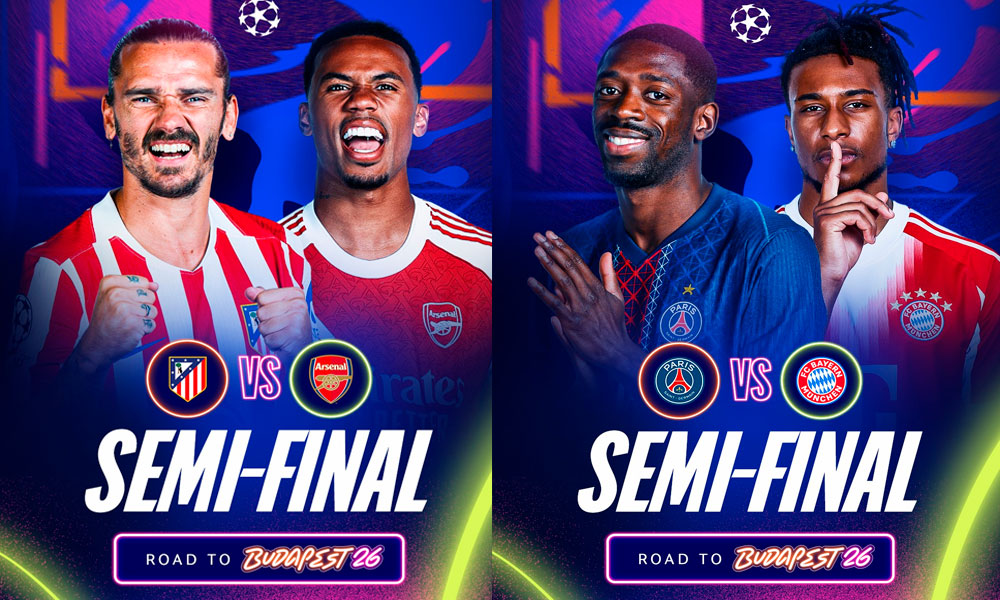 El Atlético de Madrid se enfrentará al Arsenal y el Bayern Múnich al París Saint-Germain en las semifinales de la Liga de Campeones, después de la clasificación este miércoles del conjunto alemán contra el Real Madrid y del equipo inglés frente al Sporting de Portugal.