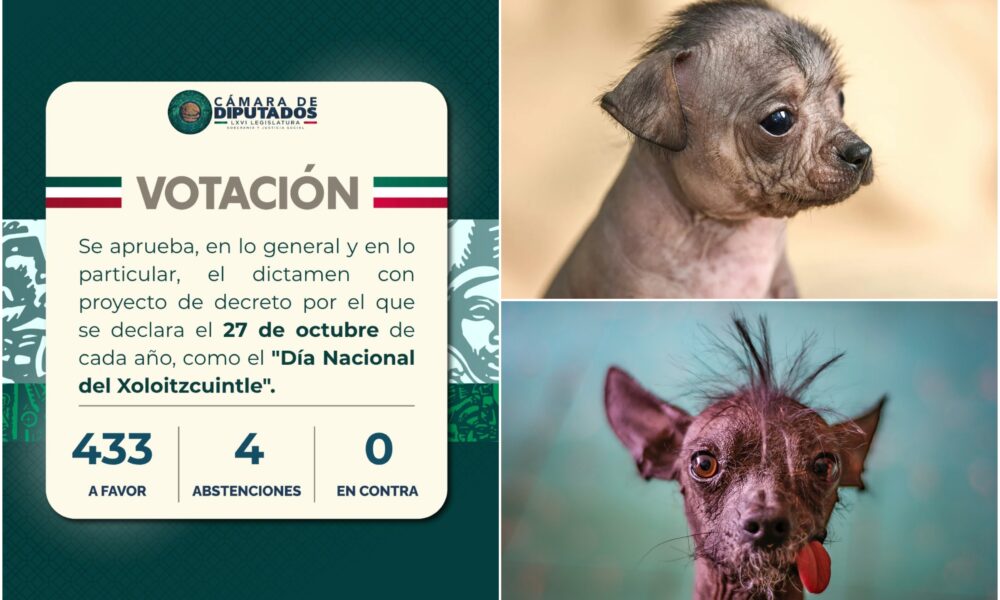 La Cámara de Diputados aprobó declarar el 27 de octubre de cada año como el “Día Nacional del Xoloitzcuintle”, al considerar que este perro originario de...