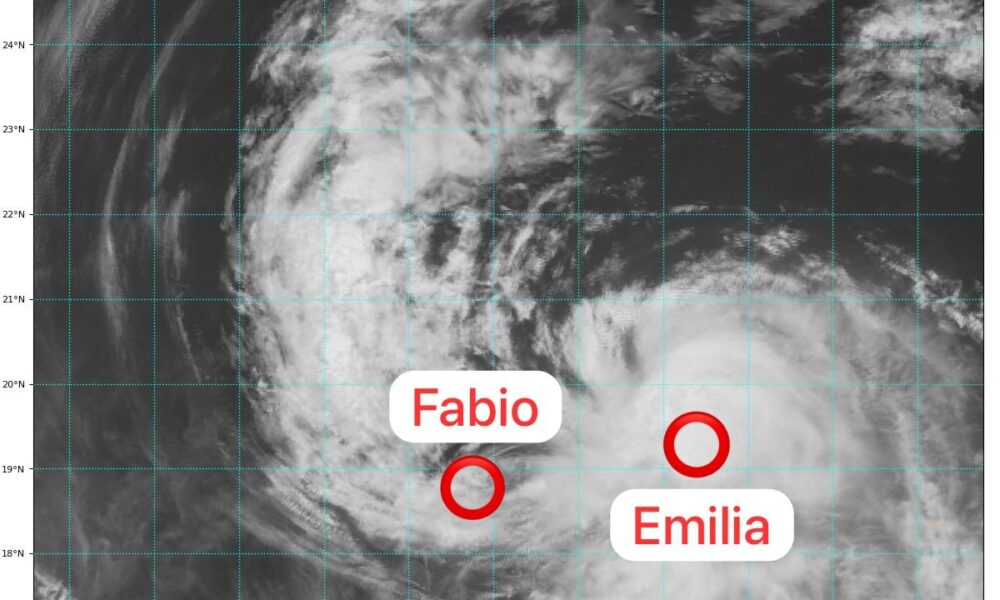 Las tormentas tropicales Emilia y Fabio se formaron a principios de esta semana y actualmente se localizan a varios kilómetros al oeste-suroeste de la Península de...