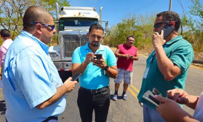 El director de Aduanas Honduras, Marco Abadie, junto al ministro de la Secretaría de Infraestructura y Transporte (SIT), Aníbal Ehrler, y el director del Instituto Nacional...