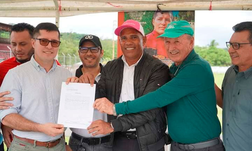 Mario Moncada titular de la Comisión Nacional de Deportes, Educación Física y Recreación (Condepor), firmó la orden de inicio de trabajo para el cambio de césped...